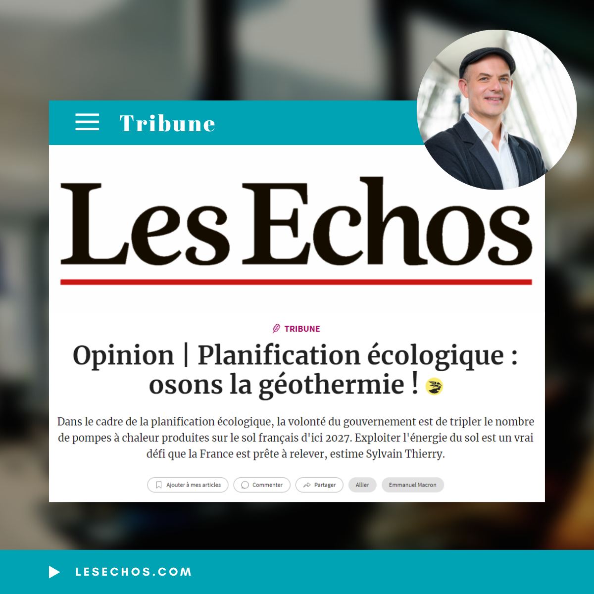 Dans le cadre de la planification écologique, la volonté du gouvernement est de tripler le nombre de pompes à chaleur produites sur le sol français d’ici 2027. Exploiter l’énergie du sol est un vrai défi que la France est prête à relever, estime Sylvain Thierry dans une tribune publiée dans Les Echos.